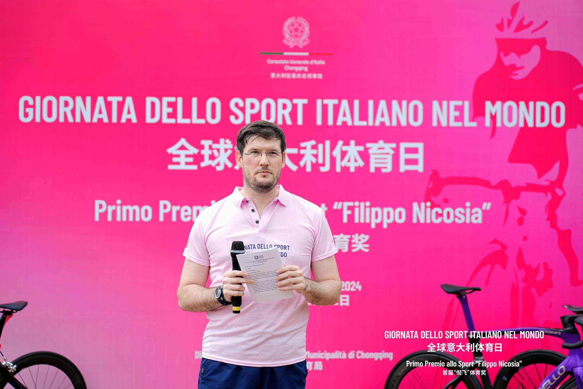 Domenica 22 settembre, presso il parco della Guang Yang Island di Chongqing, si è tenuta la I edizione del Premio allo Sport “Filippo Nicosia”. L’evento, che si inserisce nella cornice della Giornata dello Sport Italiano nel Mondo, è stato organizzato dal Consolato Generale d’Italia a Chongqing, con il supporto del Dipartimento per lo Sport della Municipalità di Chongqing, del Team 7 Triathlon Club, del rivenditore ufficiale di biciclette italiane Pinarello “Cosmic World” e di Chongqing Huazhu Sports Culture Development.