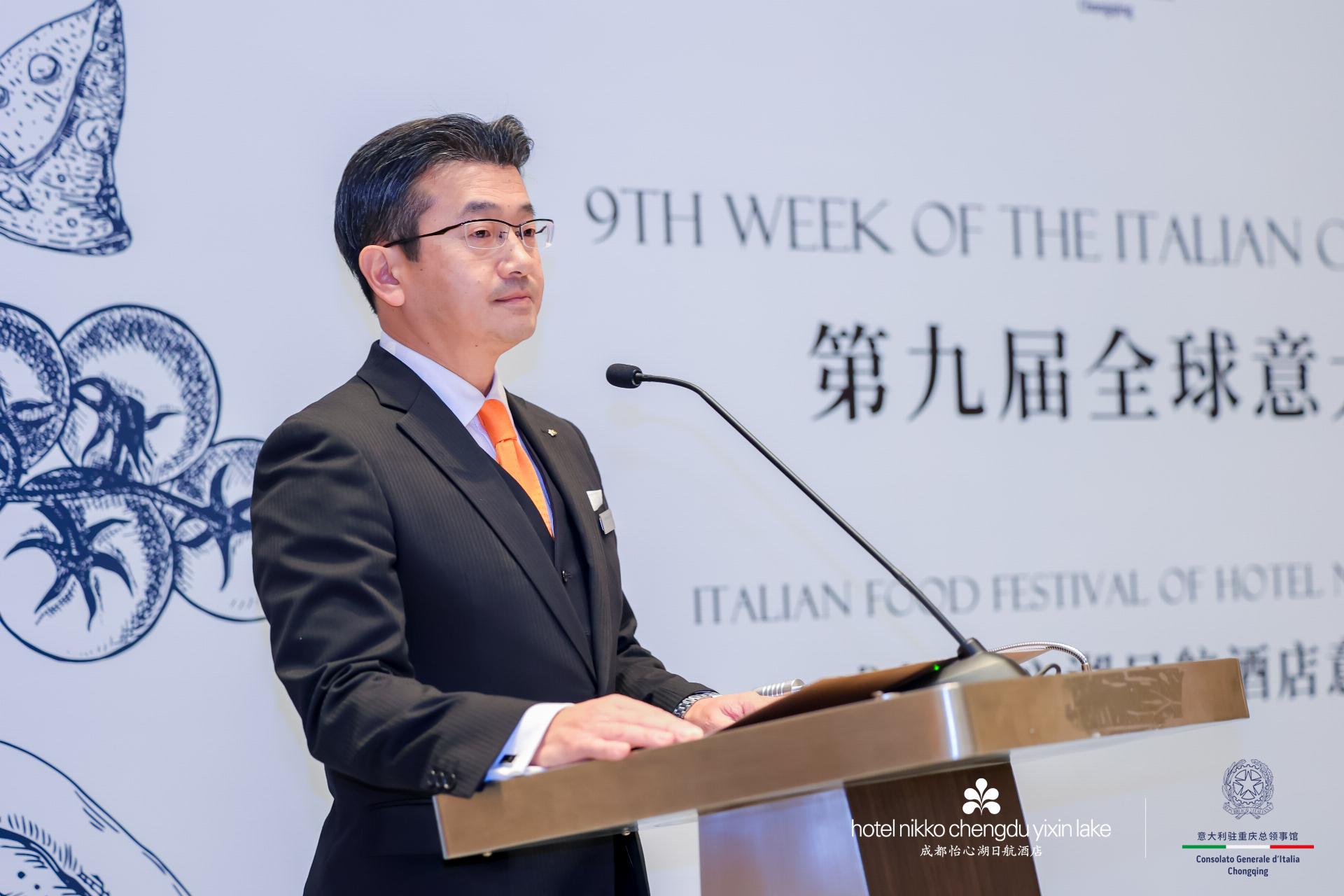 Dopo il Console Generale Schina, ha preso la parola il General Manager dell’hotel Nikko Yixin Lake Yasunari Mochizuki. Tra gli ospiti presenti alla serata, il Direttore dell’Ufficio Affari Esteri di Chengdu Jiang Bin e il Direttore del Distretto Sino-Italiano sulla Cultura e Innovazione della Nuova Zona di Tianfu Wu Huaping, nonché operatori del settore F&B, media locali ed esperti e appassionati di cucina italiana.
